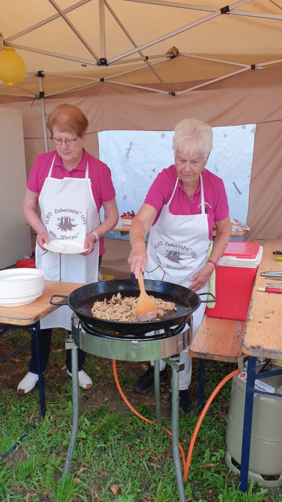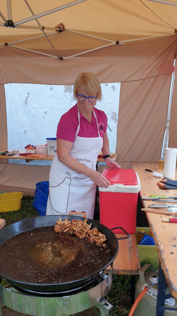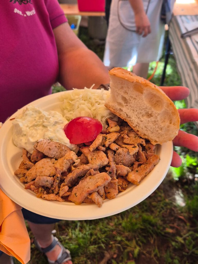 Es gab wieder unser Gyros mit Tzatziki, auf das schon lange gewartet wurde und wir schon vorher Bestellungen erhielten, und als ‚kaltes‘ Gericht unser Handkäs‘ mit Musik.