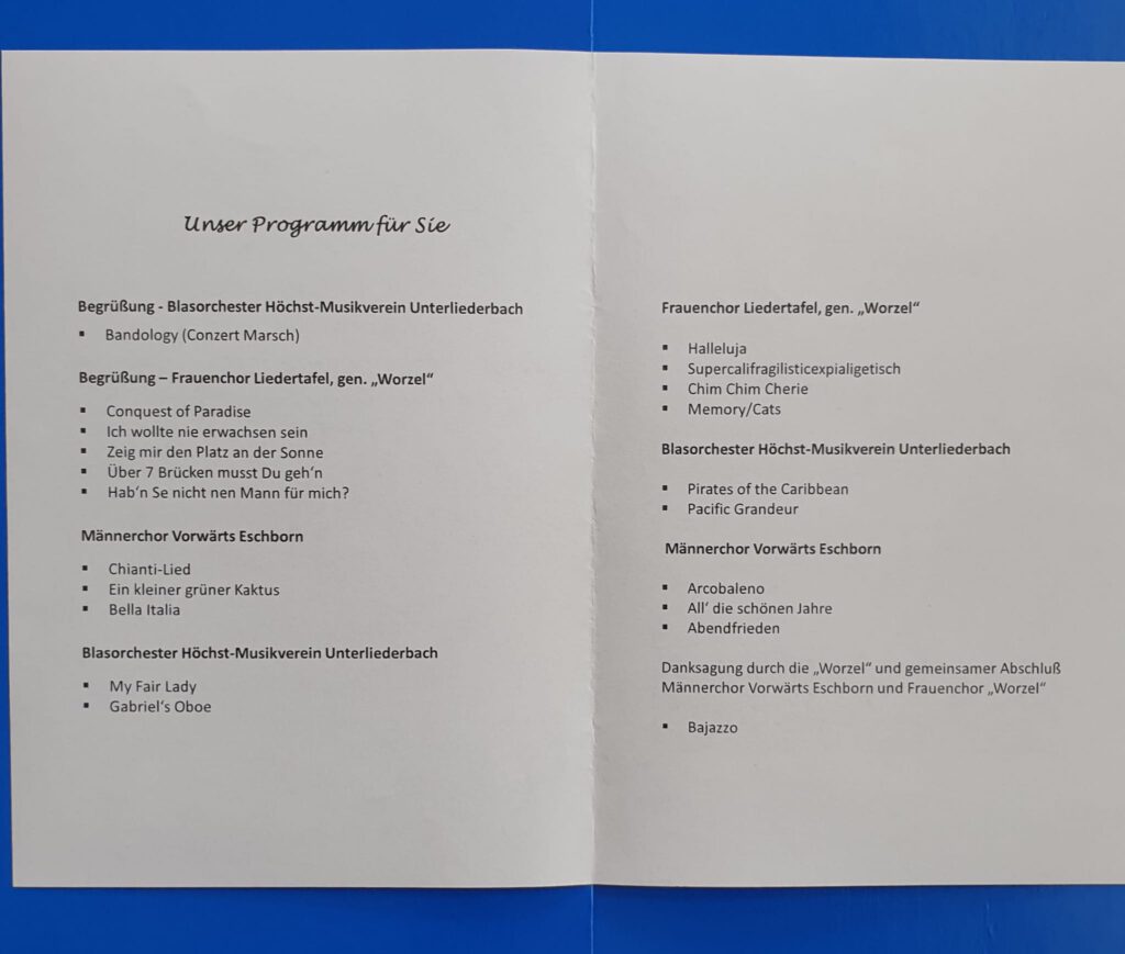 Hierfür haben wir uns Unterstützung vom Blasorchester Höchst des Musikvereins Unterliederbach mit seinem Dirigenten Simon Kunst geholt.